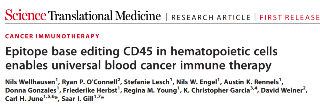 Carl June最新成果:开发表位编辑策略,用一种CAR-T,治疗所有血液癌症