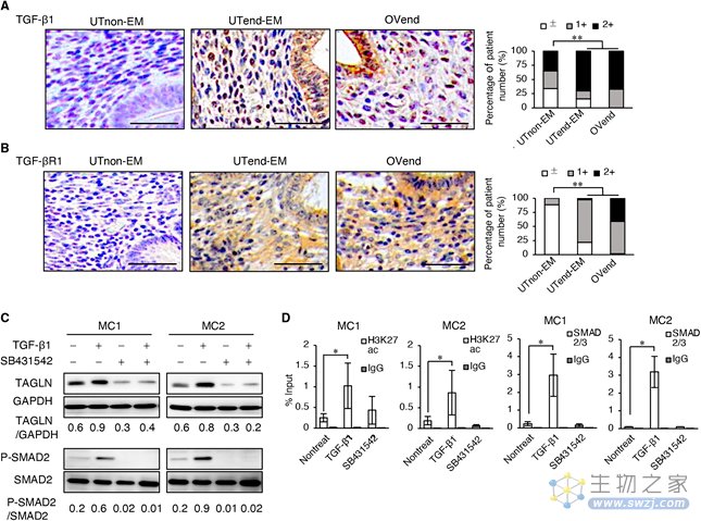 TGF-β1是在EMs中起主要作用的关键生长因子,研究人员发现相对于正常子宫内膜,EMs患者组织中基质细胞和上皮细胞中TGF-β1和TGF-β受体1的丰度均增加。