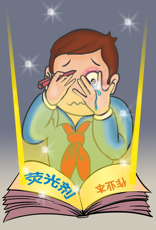 在纸张中添加荧光剂,主要是用非原浆纸制作而成,为了纸张看起来更漂亮。添加荧光剂之后,还可以省去原本的增白工序,降低制作成本。一些商家看中学生这个庞大的消费群体,一古脑地将毒食品、毒校服往学生群体推销,这不仅缺乏商业道德,还是违法犯罪。而学生分辨力不强,有时只看光鲜的外表,很容易受毒本子蒙蔽和暗算。