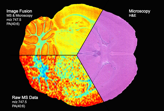 益择网讯(慕雪/编译)显微镜可以生成组织的高分辨率图像,但是它不能提供组织的分子构成信息;质谱可以提供特定组织的蛋白质、脂质和其他分子含量的精确分子构成信息,但是图像非常粗糙、模糊。为此,范德比尔特大学的研究人员结合两种成像模式的最优点,实现了质谱分析和显微镜的“图像融合”,让科学家能在高分辨率情况下看到组织的分子构成。这一技术能大大提高癌症的诊断和治疗水平,有助于揭示组织中分子的功能以及它们的功能是如何被诸如癌症这一的疾病所改变的。