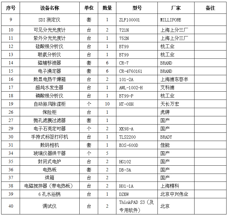 仪器比较
