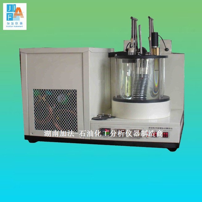 发动机冷却液冰点测定器SH/T0090测试方法是:取试样75~100ml,注入试管中,试管放入冷浴中进行降温,记录试样每分钟的温度,画出时间-温度曲线图。冷却曲线与结晶曲线的交点在纵轴上的投影点,即是该试样的冰点。