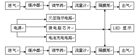 一、双气路大气采样仪KDY-B概述 KDY-B双气路大气采样仪是用于采集大气环境及工作场所中的二氧化硫、一氧化碳、氮氧化物等有害气体的专用必备仪器,该仪器严格按照HBC 2-2001《环境空气采样器》JJG 956-2000《大气采样器》执行标准而研发生产。它广泛适用于职业卫生、环境卫生等部门的检测和使用。 双气路大气采样仪KDY-B采用双泵独立完成两组气路,互不干扰,电路采用最新微电脑芯片控制技术;LED数显系统;单、双路任选;菜单操作;直观清晰;工作、欠压、充电提示等功能,内置高能镉镍充电电池,连续运转时间长,整机具有结构紧凑、性能稳定、抗负载能力强、使用方便等优点。调换不同的采样负载,既可采集两种有毒气体,也可采集平衡样,可与各种玻璃吸收瓶、活性炭采样管、硅胶采样管、采气袋及多种固体检测管等配套使用,具有一机多用等特点。 二、双气路大气采样仪KDY-B结构简介 双气路大气采样仪KDY-B整机主要部分由隔膜泵、调节阀、缓冲器、流量计、微电脑芯片控制、欠压指示电路和电源等部分组成。