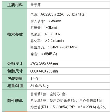 氧气浓度 | 返回顶部 ≥93±3% |