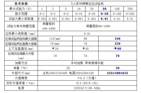 产品概述: 该弹簧试验机负荷测量采用数字显示,克服了人眼的读数误差,位移测量采用标尺与游标尺指示(小负荷用数字显示),去掉了负荷传感器的变形引起的位移,使位移准确。使用方便、高效、高精度、性能稳定等特点。 功能特点: 试验力显示:数码管数字显示,具有上下限分选功能。 位移显示:标尺与游标尺指示,具有微调功能。 加载方式:手动加载,快捷方便,位移有定位装置,便于快速分选(5000牛以上机动加载)。 过载保护:试验力过载,数码管闪烁(机动加载,过载自动停机) 产品参数: ![]() 返回顶部 |