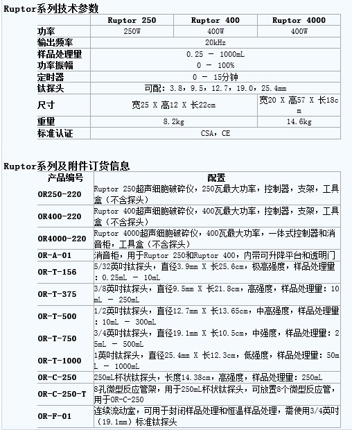 仪器功率 | 返回顶部 Ruptor 250:250W;Ruptor 400/4000:400W |